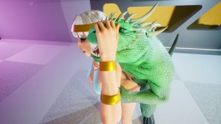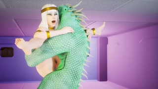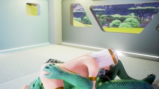 Tatyana visiting green furry dragon with a double thin dick gets a big creampie all over her body
