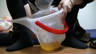 お部屋でおしっこ3回分 バケツに貯めました