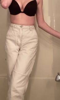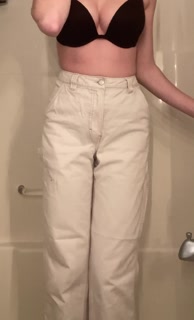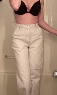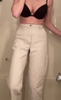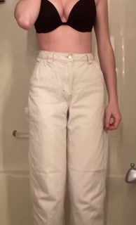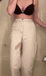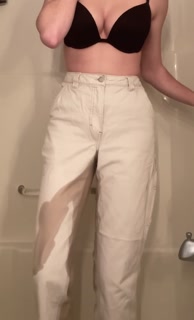 Teen girl desperately pisses her white jeans
