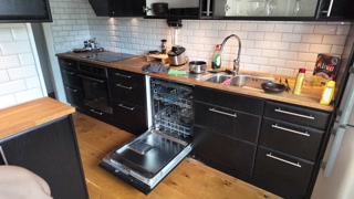 Teen slave cleaning the kitchen
