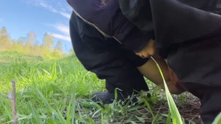 Teen wet pissing in nature