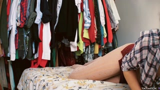 Teenage girl dreams of a big cock and masturbates with her fingers.
