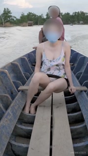 Thai girl showing her pussy and tits on a public boat.