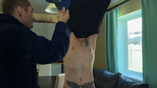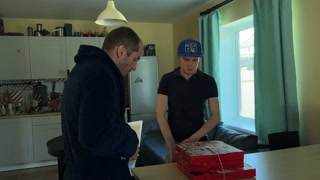 The guy glued the pizza courier and fucked him for money