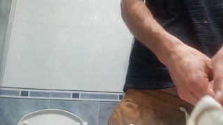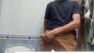 The Guy With The Huge Cock So Fat In His Pants, He Unloads It With 5 Jets Of Semen In The Air