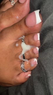 The neighbor let me jerk off and cum in her toes with her pretty long toenails