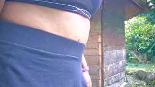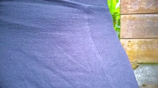 Thick-lipped ebony girl shows her tits in a public place