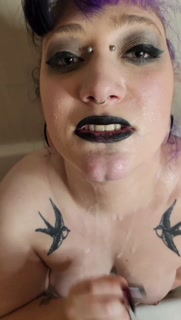 Thirsty goth piss whore demands her piss & cum tribute