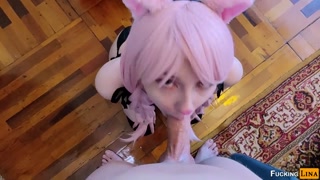 This kitty licked all the cream! Whipped cream blowjob