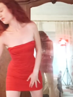 This redhead Spanish bitch does a sexy dance for her stepfather and then masturbates