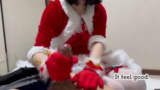 This time I wore a Santa Claus costume and gave him a hand job on his dick with gloves on!