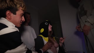 Three guys fucked a cute bitch hard at a party