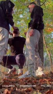 Threesome in the forest public bareback fuck hot Polish boys with sneakers