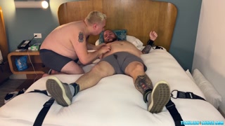 Tied up Austin laughs out loud as he gets tickled by Matt