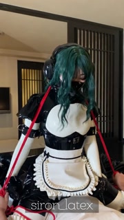 Tightening a red string around the neck of a rubber doll
