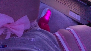 tiktok girl uses pink toy while watching porn / hentai