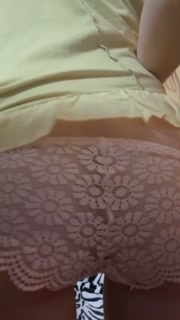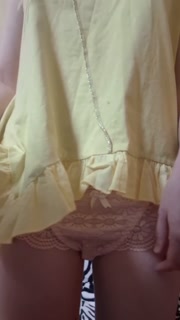 Tiny yellow dress reveals pussy