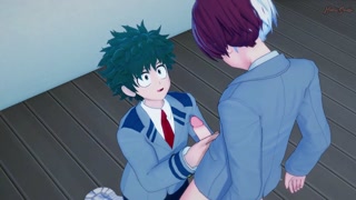 Todoroki cums on Deku's face, fucks him against the wall - My Hero Academia Hentai.