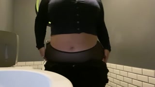 Толстушка в туалете бара раздевается и ласкает огромные сиськи Irina Priroda