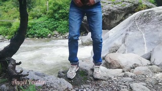 Tourist girl pissing while her period started in nature with dirty panties - Angel Fowler