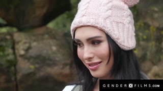 Trans Hottie Smashed Outdoors By Hunk During Camping Trip - Ember Fiera - GenderXFilms
