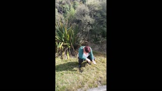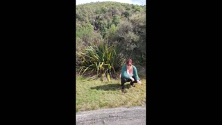 Trashy Kiwi MILF pisses on roadside with oncoming traffic