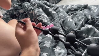 Trying new anal beads and my pussy makes happy accident