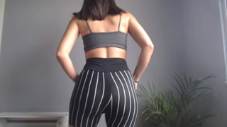 trying on gym clothes