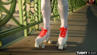 TUSHYRAW Petite Cute Blonde Cheerleader Kait Gets Her Tight Little Ass Filled