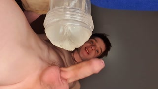 Twink fucked his fleshlight and filmed it. Moaning. Cum inside. Dick throbbed.