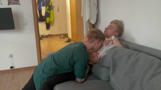 Twink invited his twink friend with a big dick over and seduced him into giving him a blowjob