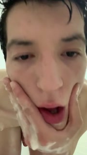 Twink plays in shower and eat cum