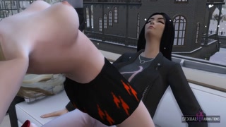 Two Girls Heats Up from the Cold Fucking on the Terrace of a Restaurant - Sexual Hot Animations