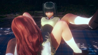 Two Girls Scissoring With School Uniform