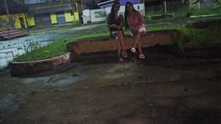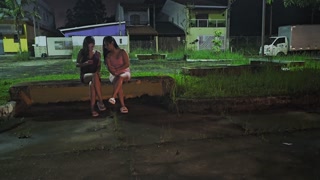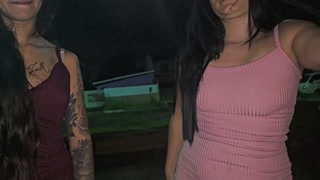 Two hot girls caught him masturbating inside the car and helped him cum.