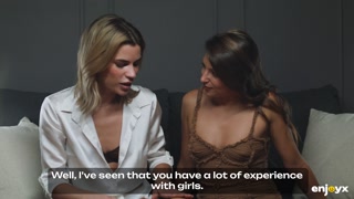 Two skinny girls Ada Lapiedra and Talia Mint are shocked by a huge dick
