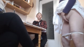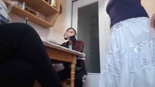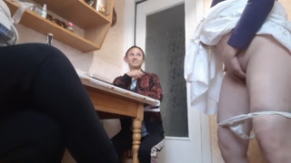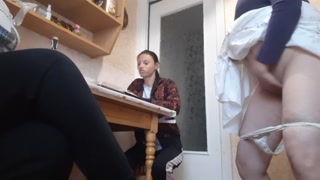 У нашей третьей девушки начала течь киска и она кончила на кухне под наши грязные разговоры