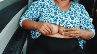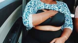Uber driver gets into beautiful passenger's panties. Seducing in car.