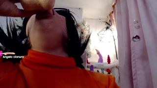 Velma from Scooby Doo destroys his throat with huge cock