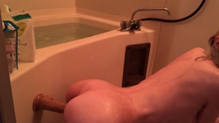 Very skinny girl masturbate in the shower and play with foam and her big dildo
