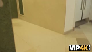 VIP4K. Hunter gorgeous redhead in public toilet