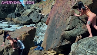Voyeur Beach Babe Almost CAUGHT Masturbating to couple fucking
