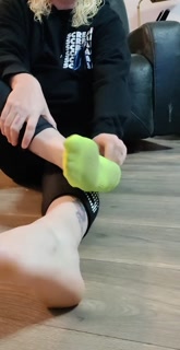 Waitress after work smelly shoes and sweaty sock removal