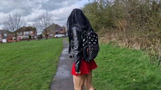 Walking in public with no panties so you can see my pussy. I needed to pee too.