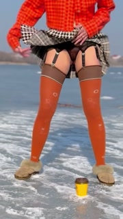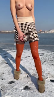 Walking in the park, on the ice, undressing and photo session