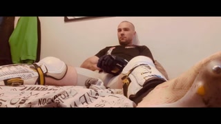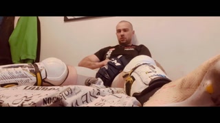 Wank in Hockey shinpads Soccer cleats and Hockey gloves