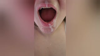 Watch me play with my husband's cum. Cumshots and titty compilation