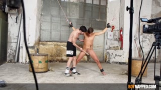Waxed twink Galiel Swan dick stroked by dom Xavier Sibley