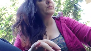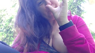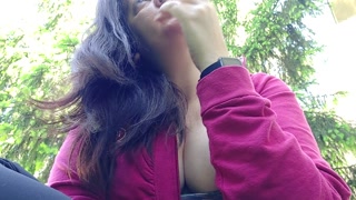 We smoke a cigarette together in a public garden while I show you my big boobs