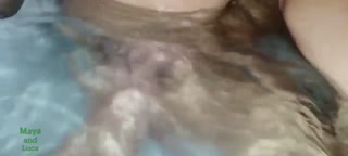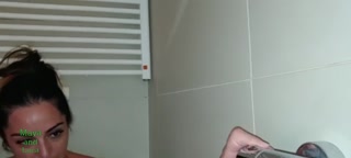 We take a bath together and my foot gets lost in your pussy